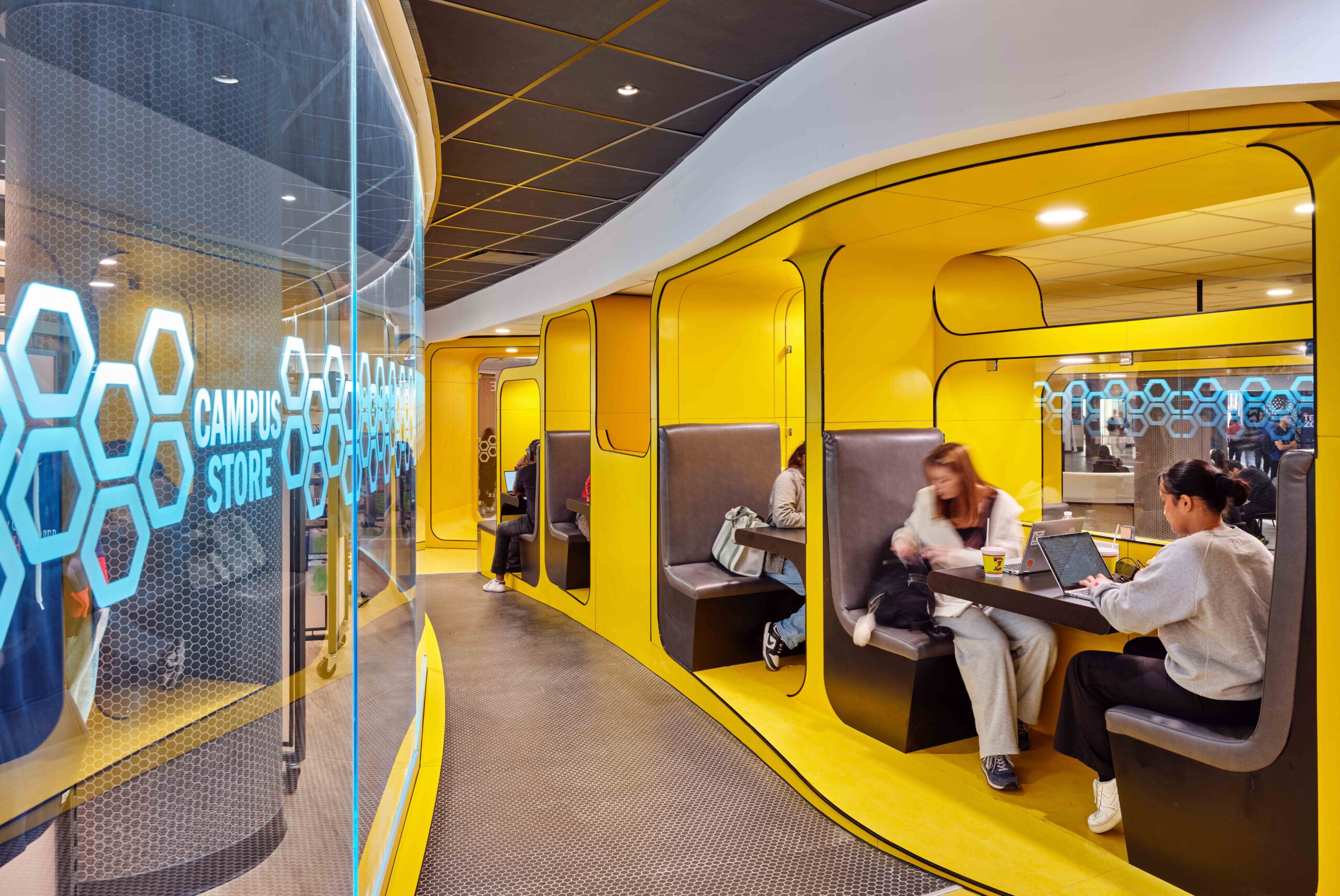 Interior renovations to modify the existing bookstore into a smaller bookstore, a public town square, shell space for future retail vendors adjacent to the town square. This was a 2-phase project that involved setting up a fire rated hoarding wall to allow the existing bookstore to remain operational while we abated and renovated the new bookstore space.